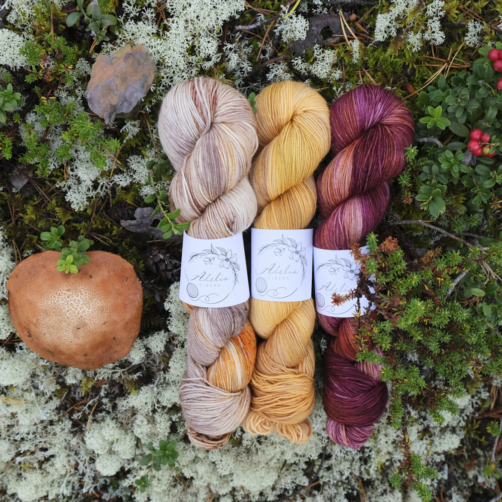 Adelia Fibers värjää kauniita väriyhdistelmiä laadukkaille lankapohjille.
