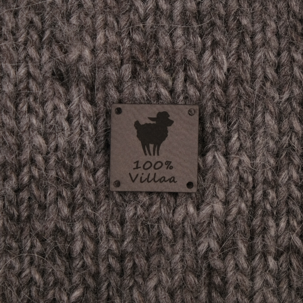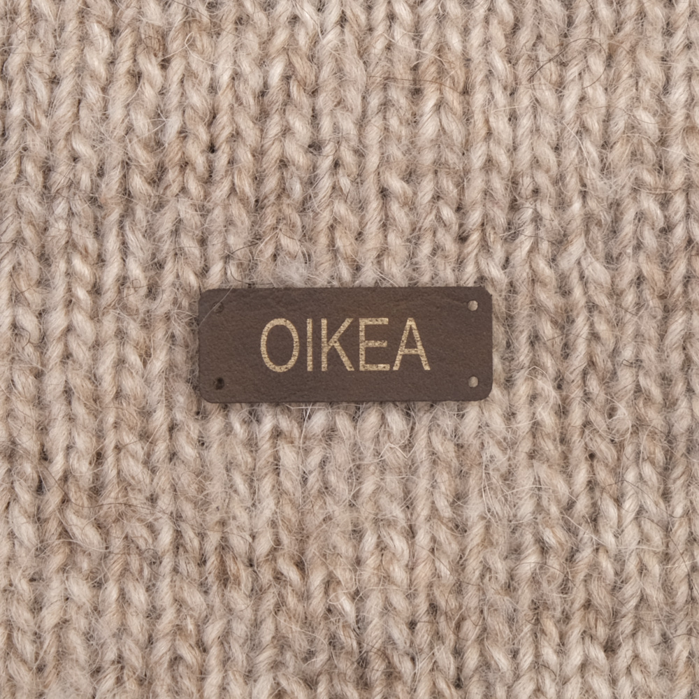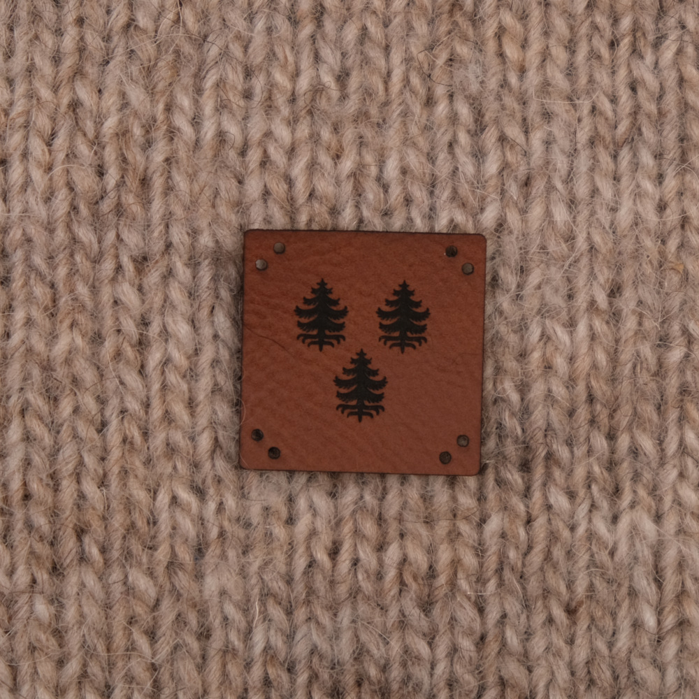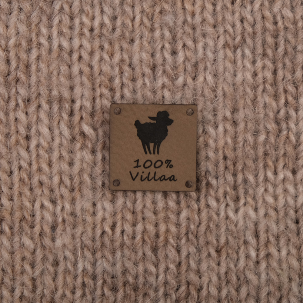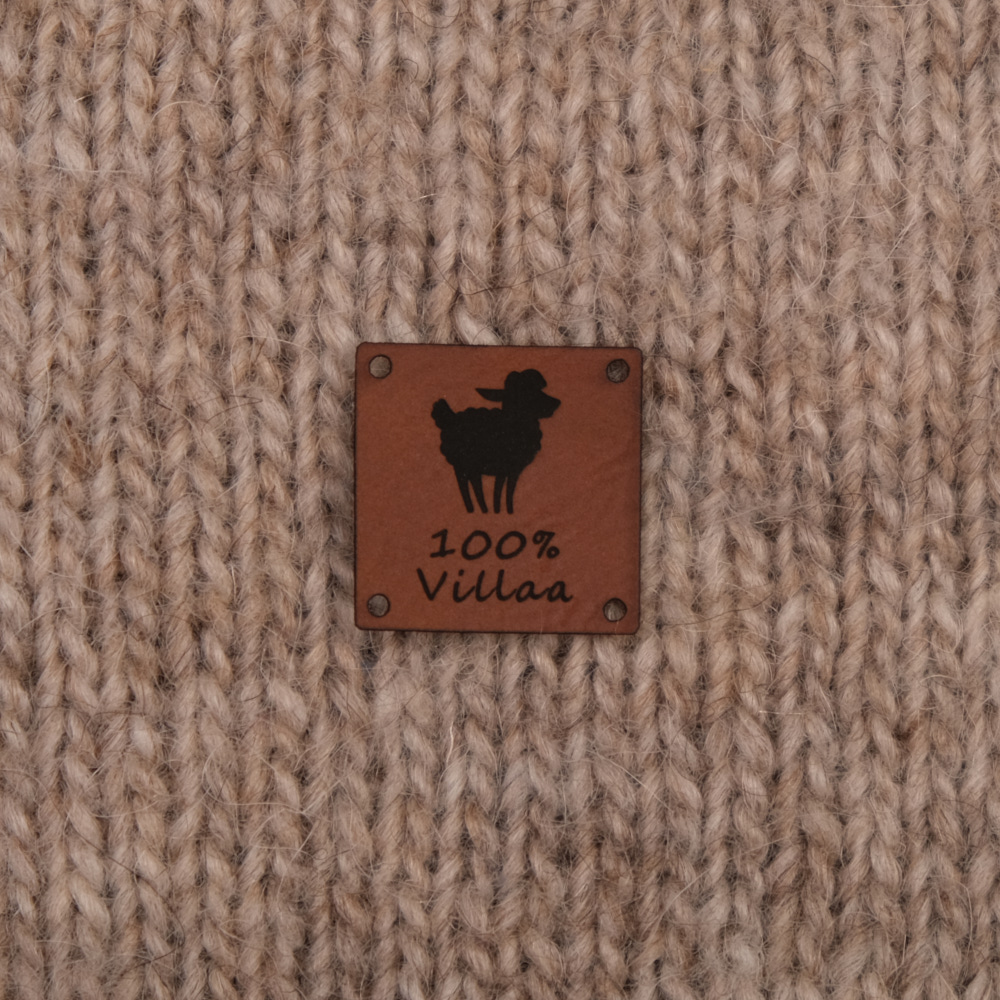 Keinonahkaan kaiverrettuja ommeltavia Handmade-merkkejä neuletyösi yksilöimiseen.
