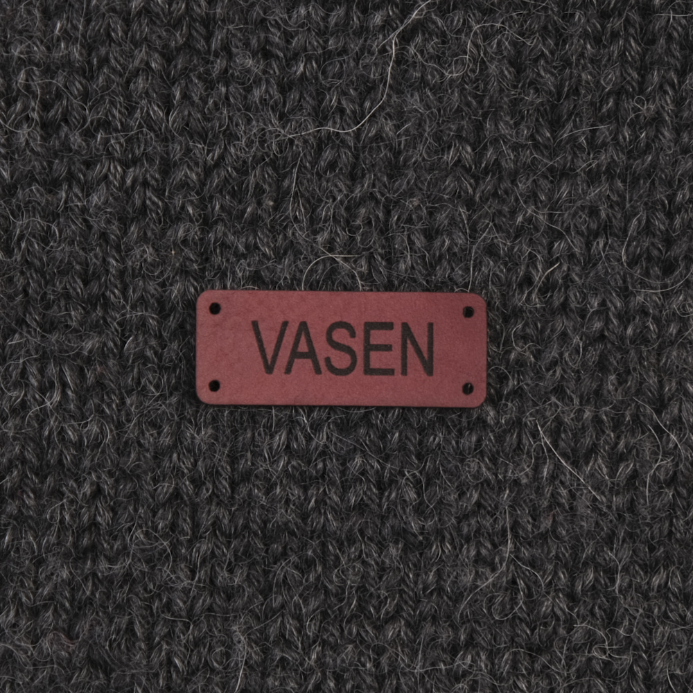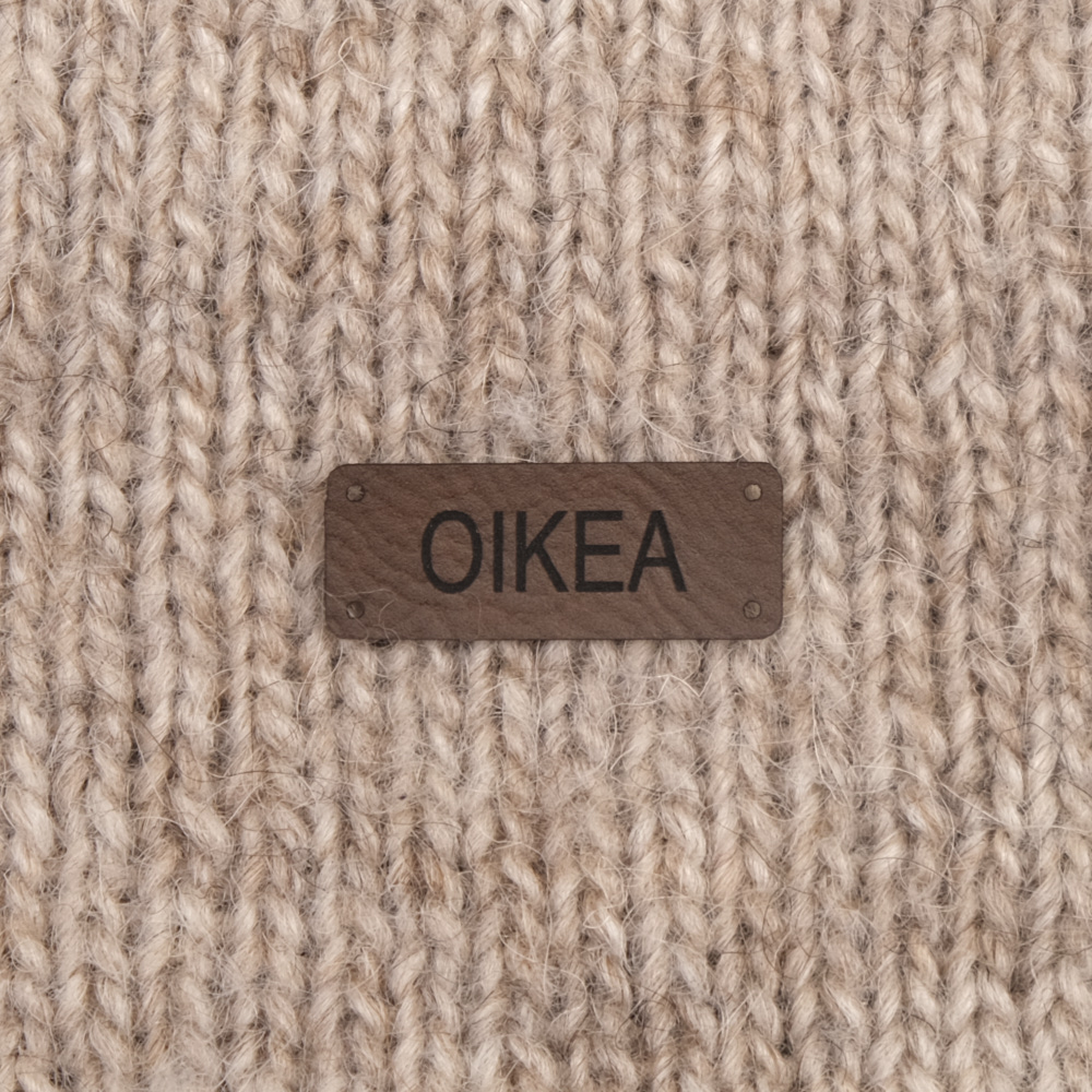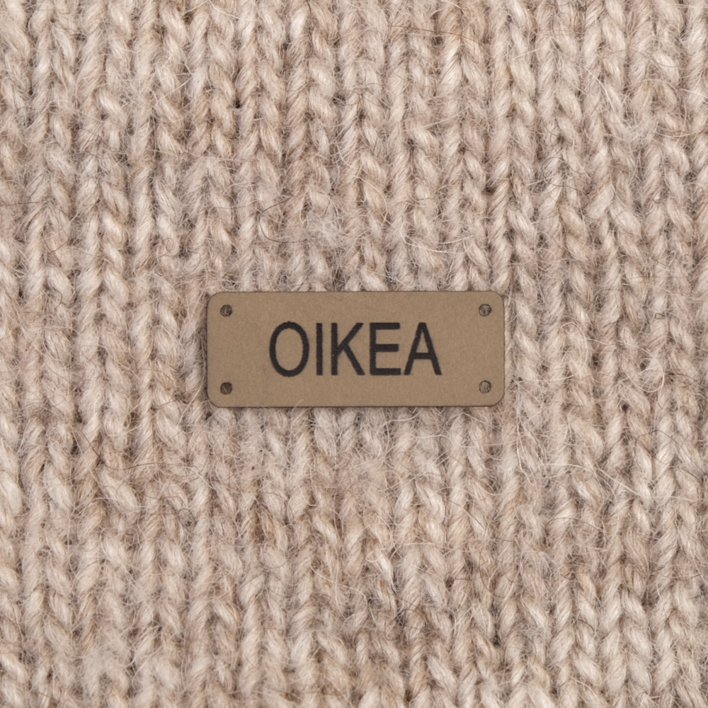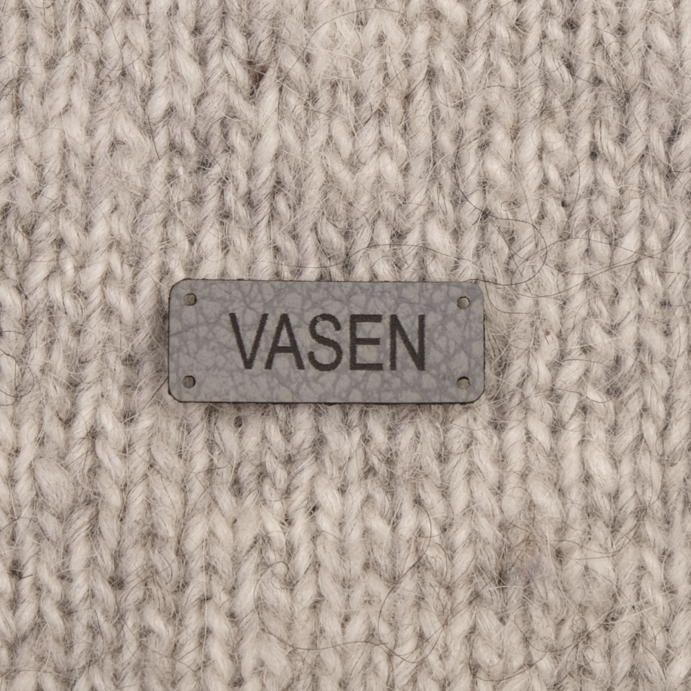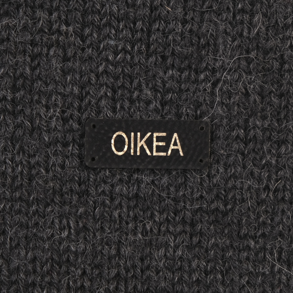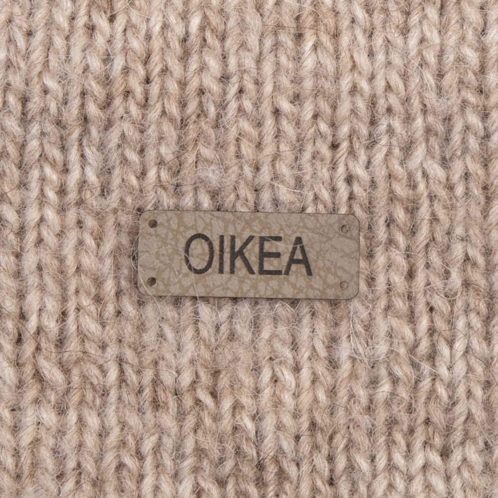 Keinonahkaan kaiverrettuja ommeltavia Handmade-merkkejä neuletyösi yksilöimiseen.