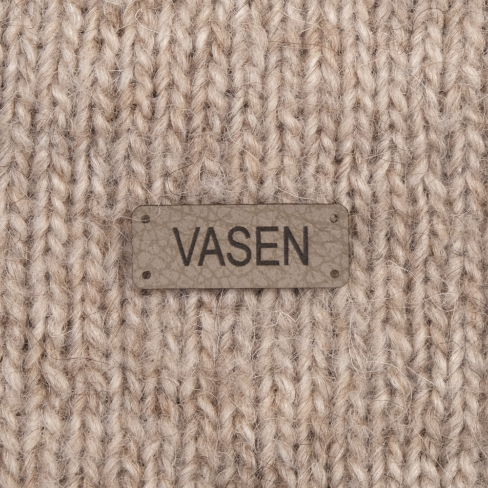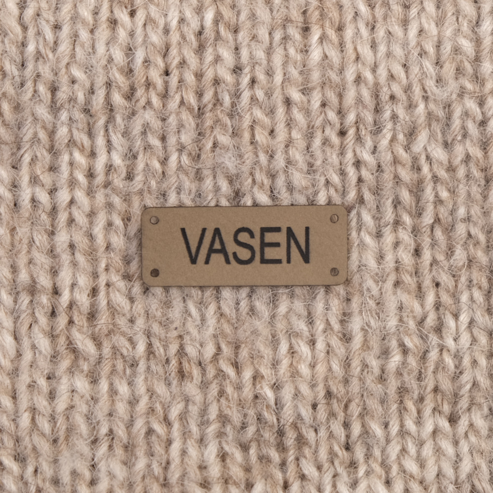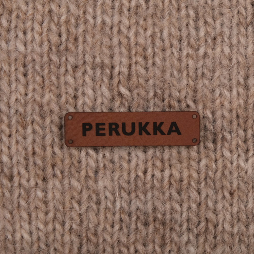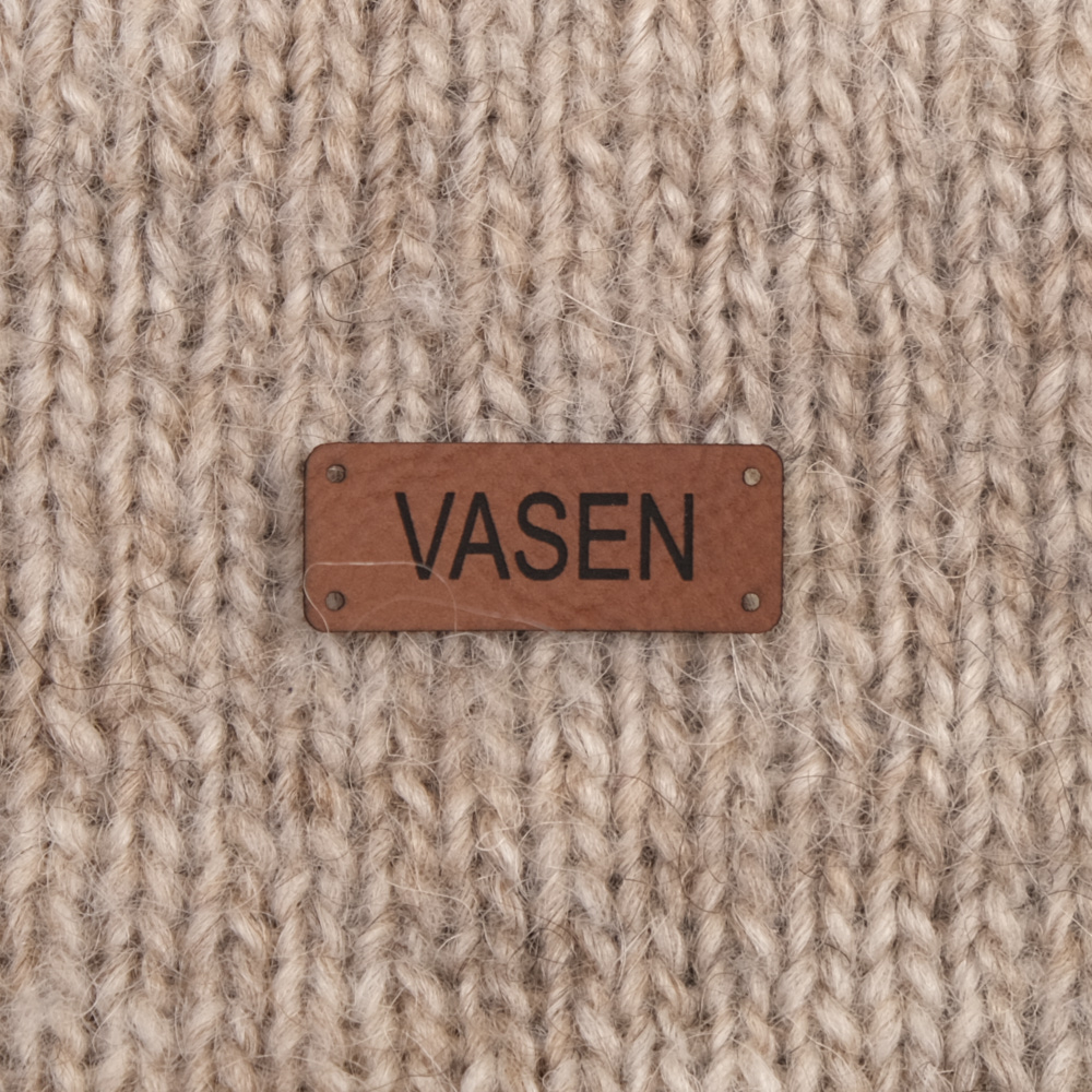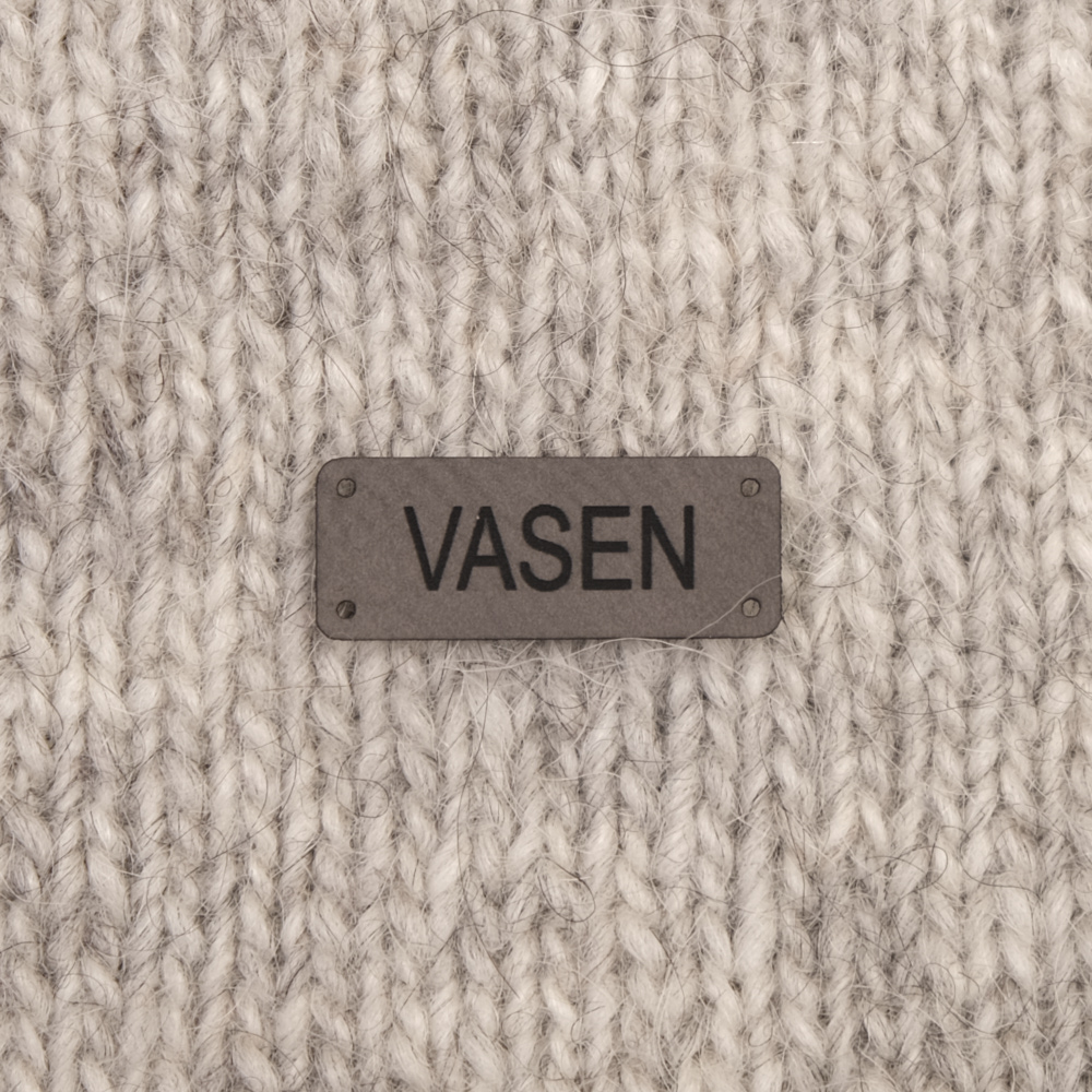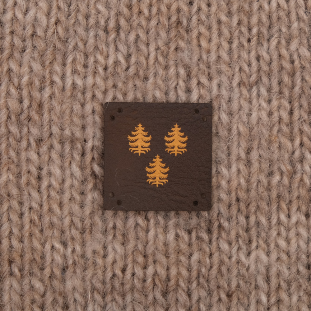 Keinonahkaan kaiverrettuja ommeltavia Handmade-merkkejä neuletyösi yksilöimiseen.
