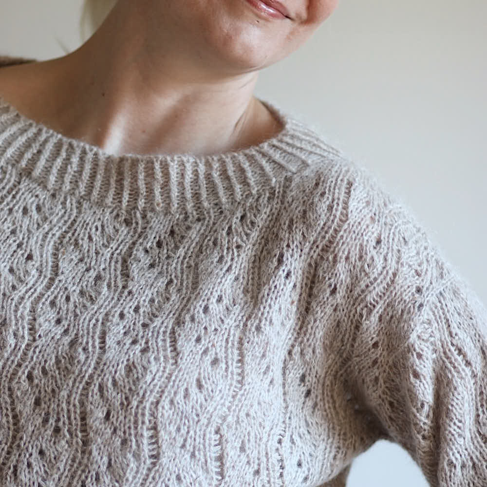 Jos haluat helmasta/hihoista pidemmän, varaathan enemmän lankaa.