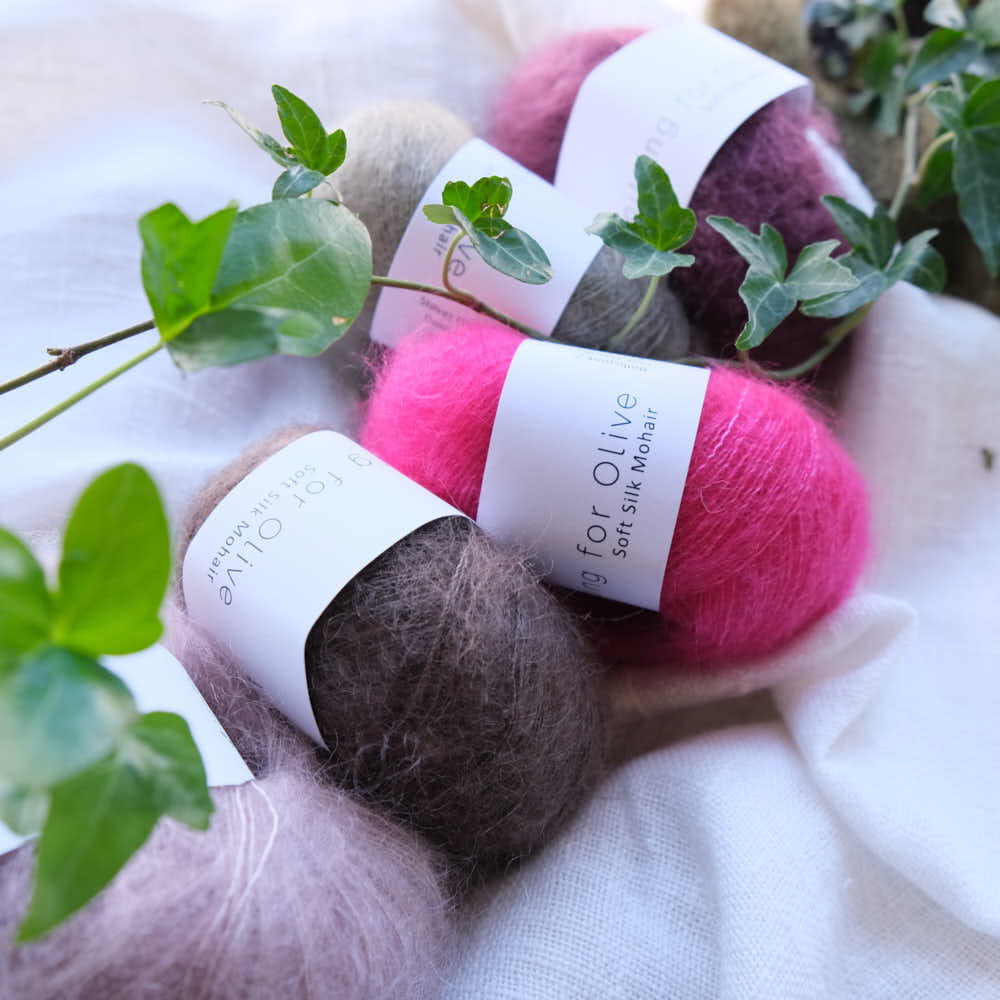 Knitting for Olive Soft Silk Mohair on ylellinen sekoitus hienointa Kid Mohairia ja Mulberry-silkkiä. Siitä voi neuloa pumpulisen neuletyön yksin- tai kaksinkertaisena. Soft Silk Mohair on myös mainio kaverilanka antamaan pörröisyyttä ja pehmeyttä. Yhdistä esimerkiksi Knitting for Oliven Heavy Merinon kanssa.