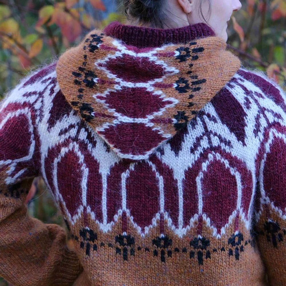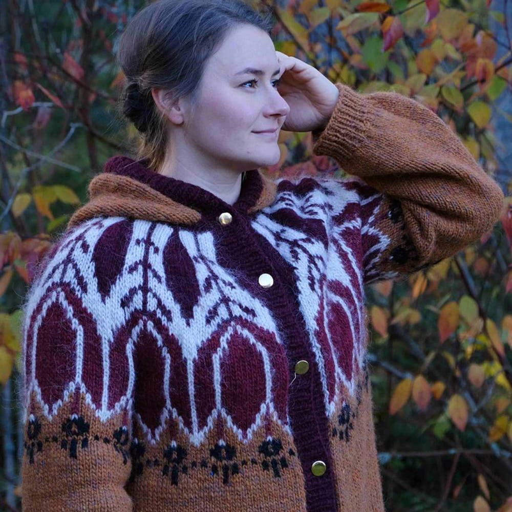 Paksumman langan versio Lilja-neuleesta hupputakkina.