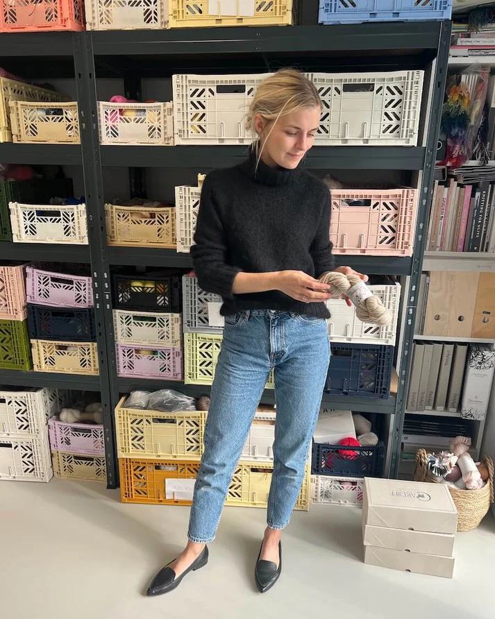 Langat: 250 (250) 250 (250) 300 (350) 350-400 g Sandnes Garn Sunday (50 g = 235 m) sekä 125 (125) 125 (125-150) 150 (175) 175-200 g Sandnes Garn Tynn Silk Mohair (25 g = 212) tai Isager Silk Mohair (25 g = 212 m)