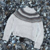 Huomaa, että kirjoneuleosio kannattaa neuloa 0,5–1 mm paksummilla puikoilla, jotta tiheys pysyy samana sileään neuleeseen nähden. Tee siis mallitilkku sekä kirjoneuleesta että sileästä neuleesta.