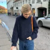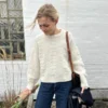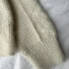 Valkoinen Esther Sweateron neulottu Isagerin Jensen Yarnista värissä 0 yhdessä Isagerin Silk Mohairin kanssa värissä E0. Sininen Esther Sweater on neulottu Isagerin Jensen Yarnista värissä 100 yhdessä Isagerin Silk Mohairin kanssa värissä 100.