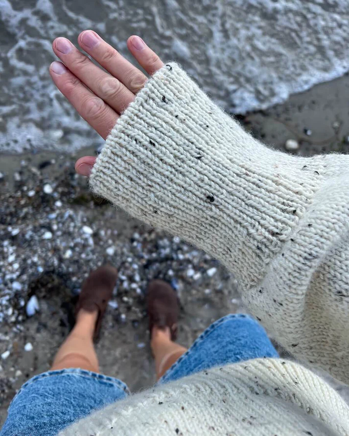 Kuvien valkoinen Louvre Sweater on neulottu Sandnes Garnin Peer Gyntistä värissä Natur Tweed [2523]. Harmaa Louvre Sweater on neulottu Sandnes Garnin Peer Gyntistä värissä Koksmelert [1088].