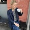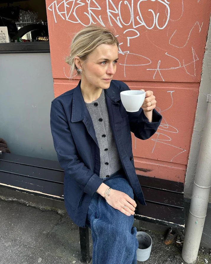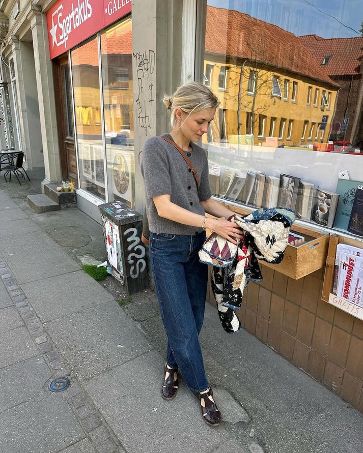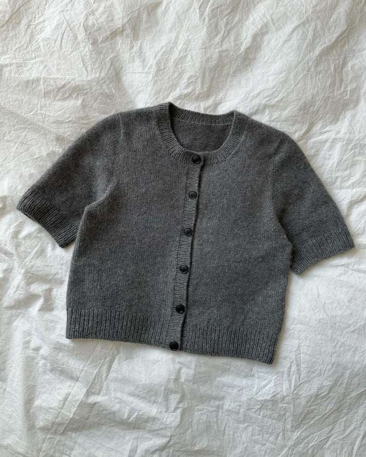 Kuvien harmaa Maggie Cardigan on neulottu Cardiffin Cashmere Classicista värissä Fumo [519].