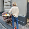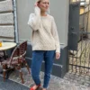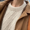 Kuvien valkoinen Moby Sweater on neulottu Sandnes Garnin Double Sundaysta värissä Almond [2511] yhdessä Sandnes Garnin Tynn Silk Mohairin kanssa värissä Kitt [1015].