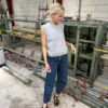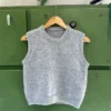 Kuvien harmaa Novice Slipover on neulottu Hjelholt Uldspinderin Pelsuld 5,5/2 värissä Isblå [08] yhdessä Knitting for Olive Soft Silk Mohairin kanssa värissä Pudderblå.