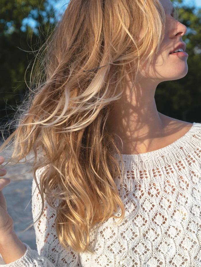 Pitsiä kesään! Seabreeze pusero neulotaan ylhäältä alaspäin ohuesta, Sandnes Garnin Tynn Linestä. Puuvillaa, pellavaa ja viskoosia sisältävä lanka tuo kesäneuleisiin pehmeyttä, viileyttä ja hieman kiiltoa.
