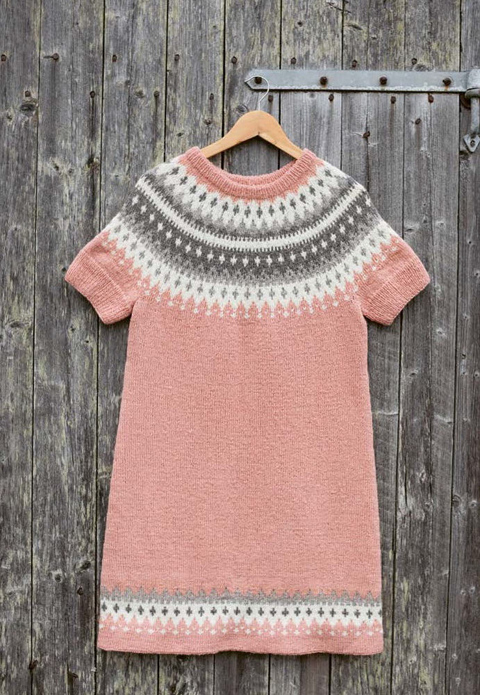 Kepeä, lyhythihainen mekko sport-vahvuisesta Finull -langasta, joka on rouheaa 100 % norjalaista villaa.  Voit neuloa mekon myös vastaavasta Sport-vahvuisesta langasta, jolla pääset oikeaan neuletiheyteen. Varde-mekko neulotaan alhaalta ylöspäin, hihat neulotaan erikseen ja yhdistetään kaarrokkeen kohdalla vartalon alaosaan. Kuviossa ei ole pitkiä langanjuoksuja ja kerrallaan kuviossa kulkee kaksi lankaa. Näin ollen se on helppo neulottava aloittelijallekin.  Ohje on norjankielinen. Ota haaste vastaan ja neulo ajattomia, skandinaavisia neuleita skandinaavisilla kielillä kirjoitetuista ohjeista.